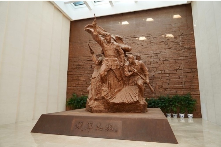 新四軍紀念館內(nèi)的鐵軍忠魂雕塑。(新華社記者 李博 攝)