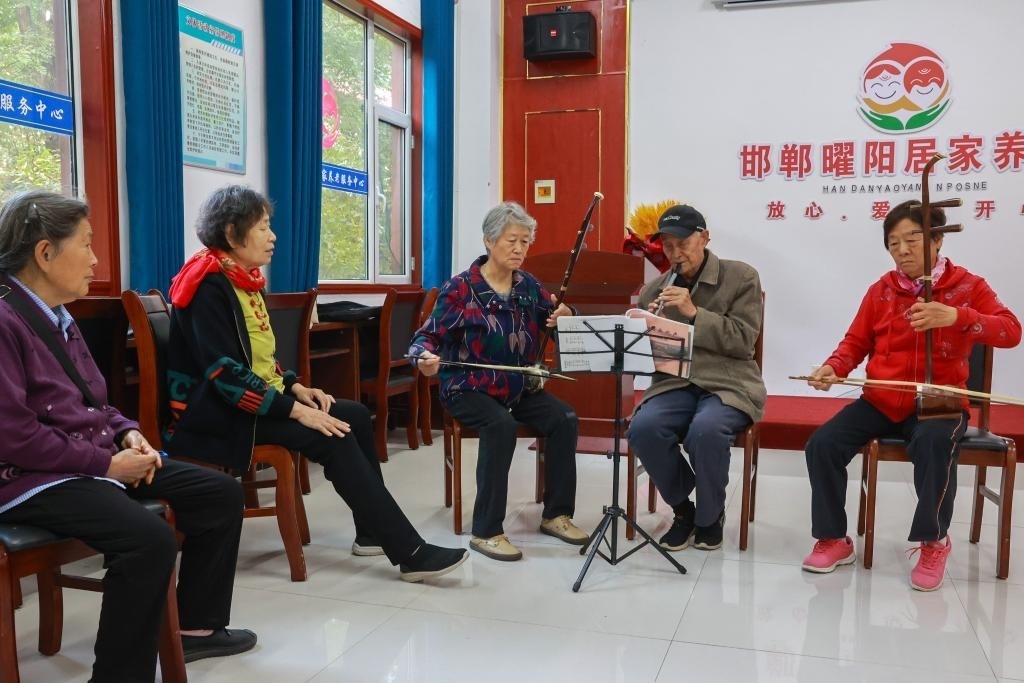 圖為河北省邯鄲市邯山區(qū)曜陽養(yǎng)老服務中心內,老人在學習樂器演奏。新華社記者趙鴻宇 攝
