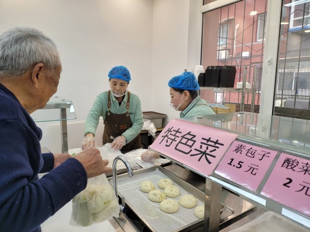 臨近中午,遼寧省沈陽市大東區(qū)東勝社區(qū)網格員在群中發(fā)布了“今日菜譜”:燒排骨、燒茄子、雪里紅燉豆腐……88歲的居民唐孝周來到社區(qū)開辦的惠民食堂,購買了一菜一飯,和鄰居邊聊邊吃。