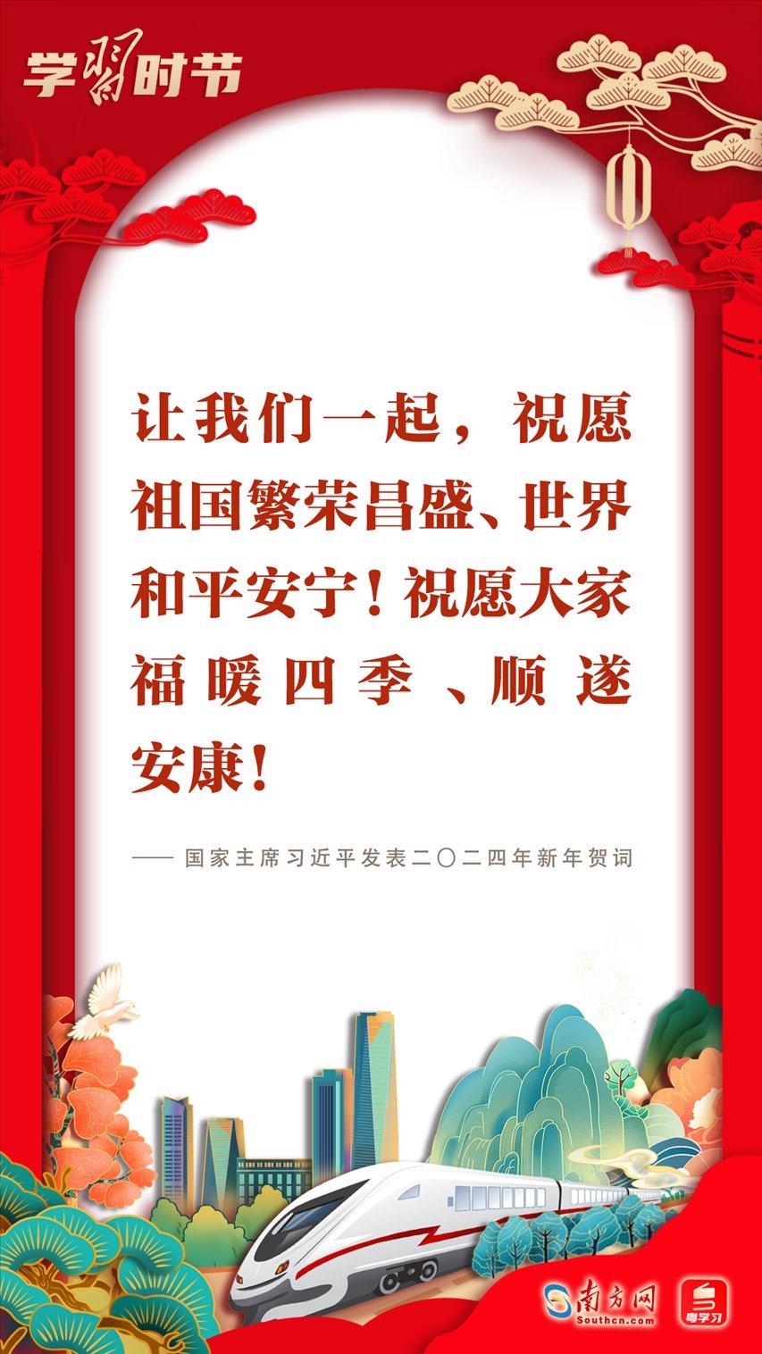 2023年12月31日晚,國家主席習(xí)近平在北京發(fā)表二〇二四年新年賀詞。賀詞飽含對廣大人民群眾的深情,彰顯對中國發(fā)展的堅定信心?;厥走^往,展望未來;砥礪前行,征程再起。讓我們一起在習(xí)近平主席的新年賀詞中感受直抵心靈的溫暖、催人奮進的力量!