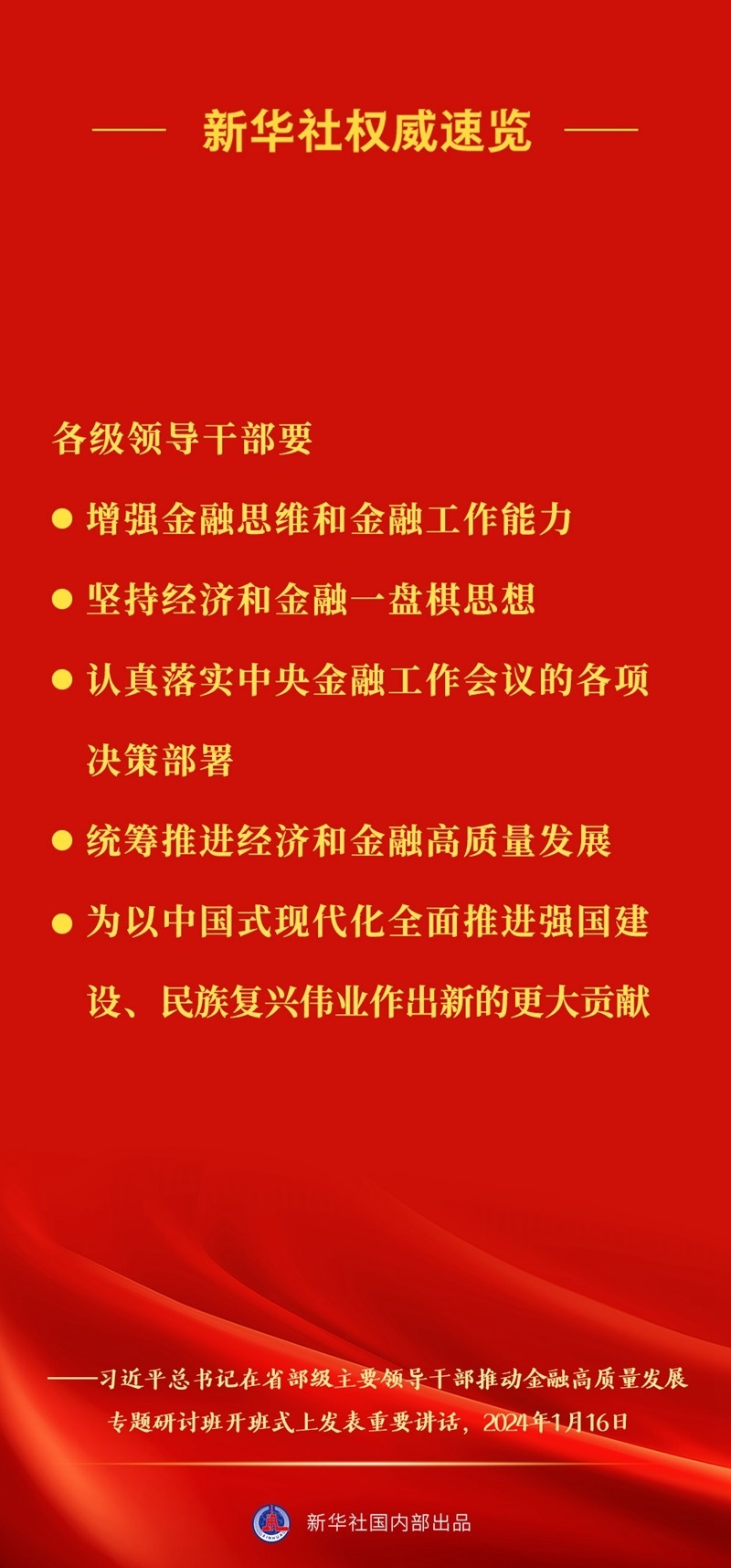習近平總書記16日上午在省部級主要領導干部推動金融高質量發(fā)展專題研討班開班式上發(fā)表重要講話,一起來看講話要點。