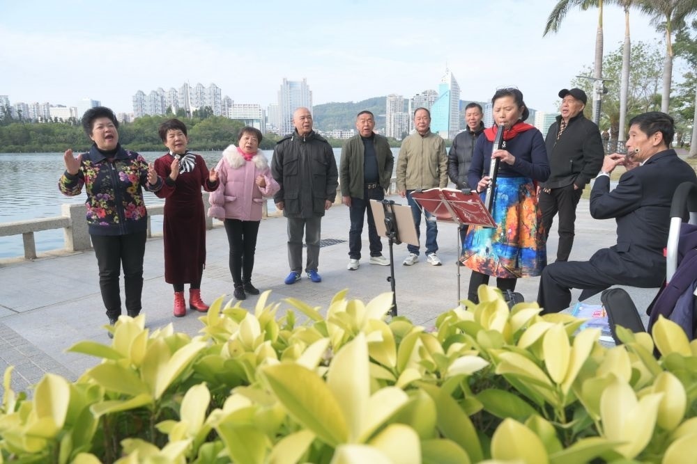 2024年1月24日,市民在位于廈門筼筜湖邊的南湖公園開展娛樂活動(dòng)。新華社記者 林善傳 攝