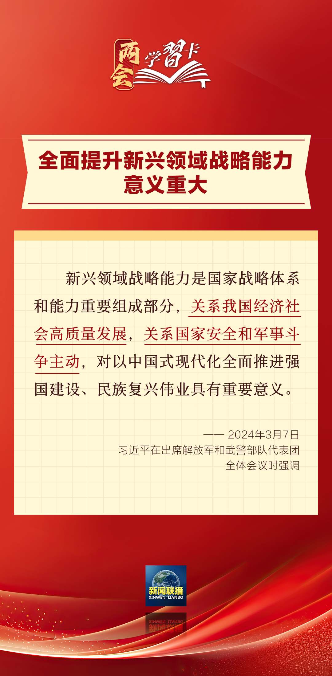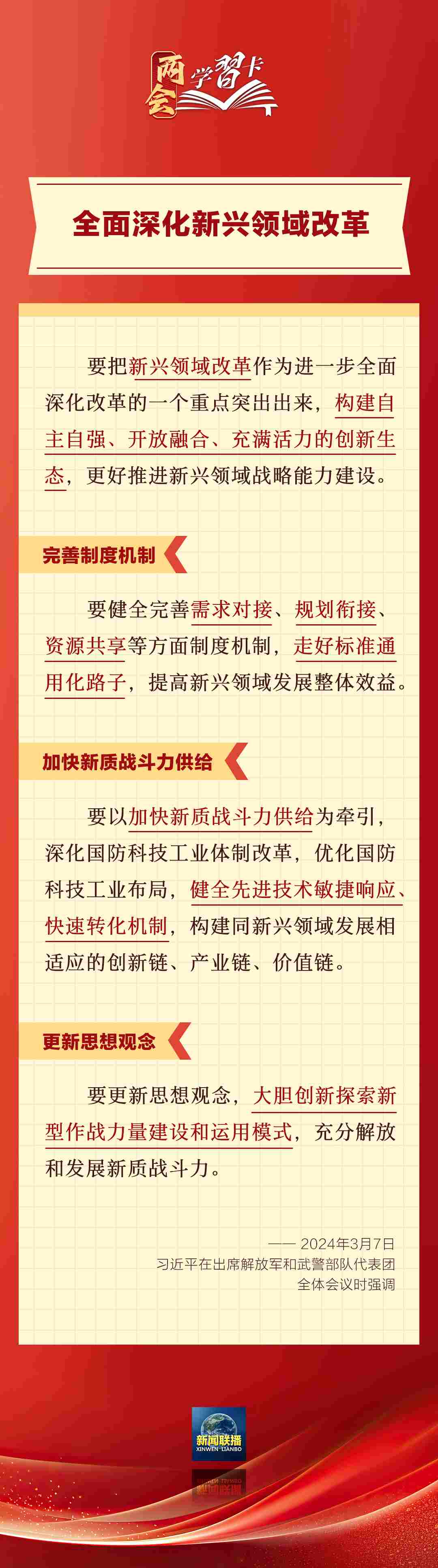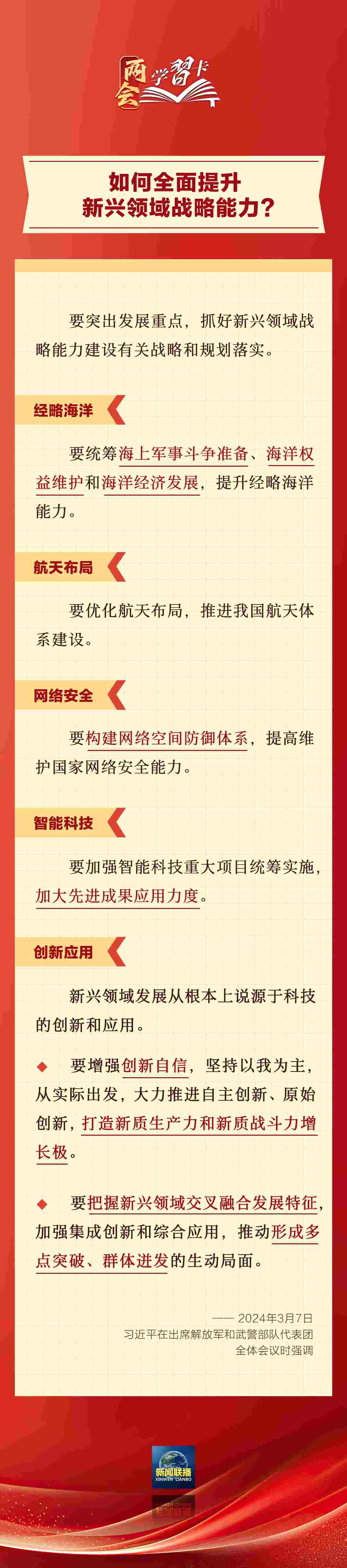 3月7日,習近平在出席解放軍和武警部隊代表團全體會議時強調(diào),強化使命擔當,深化改革創(chuàng)新,全面提升新興領(lǐng)域戰(zhàn)略能力。如何提升新興領(lǐng)域戰(zhàn)略能力?一起學習↓↓↓