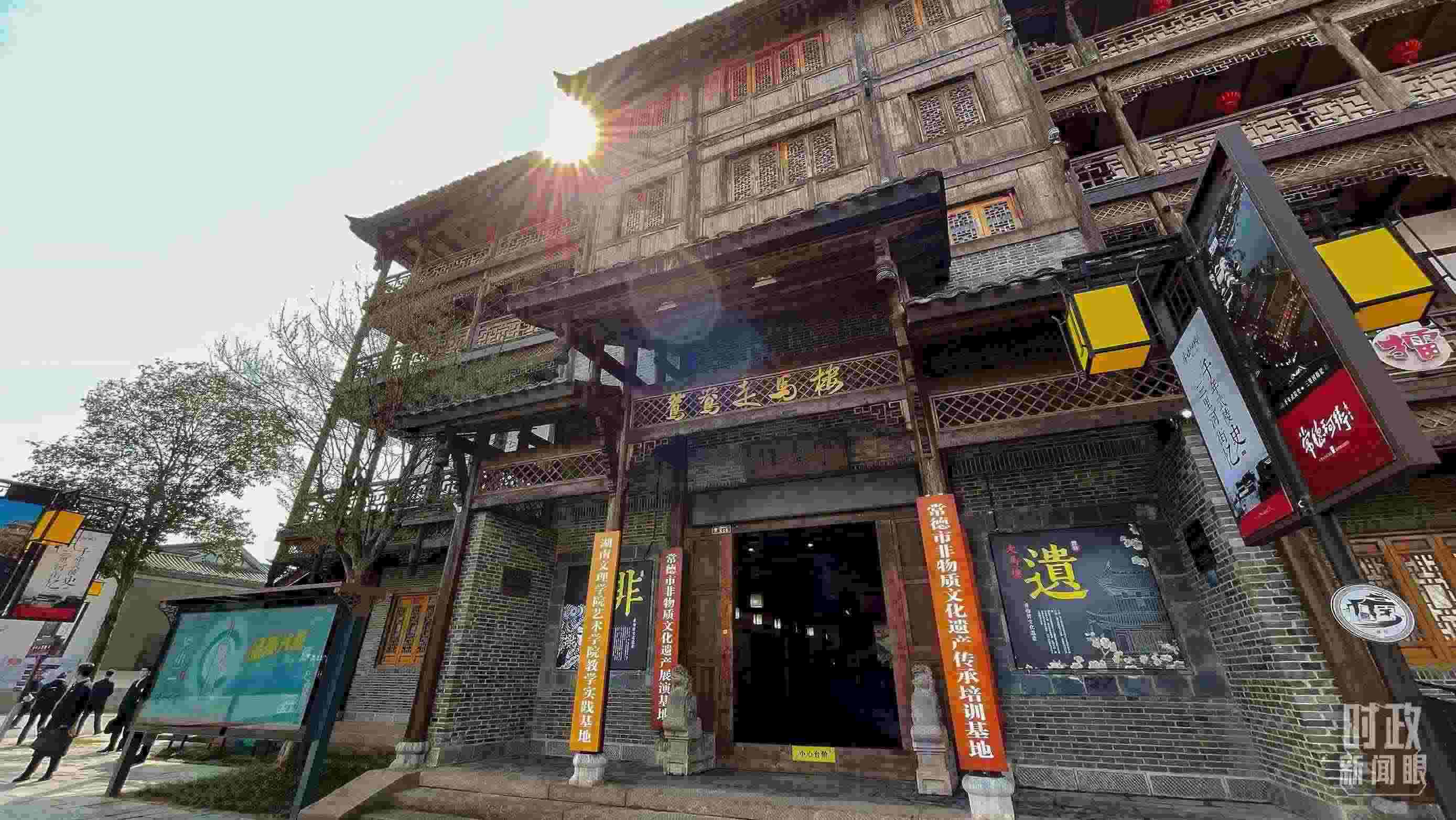 △常德河街鴛鴦走馬樓內(nèi)的常德高腔、常德木雕等非遺展示。(總臺(tái)央視記者郭鴻、央廣記者潘毅拍攝)