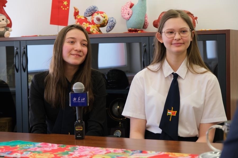 2023年2月7日,在匈牙利首都布達(dá)佩斯,匈中雙語(yǔ)學(xué)校學(xué)生胡靈月(左)和宋智孝接受新華社記者采訪。新華社記者 鄧耀敏 攝