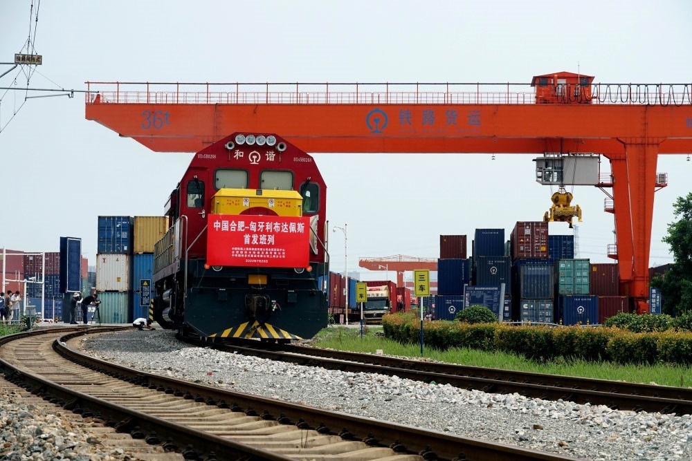 2022年7月29日,合肥至匈牙利布達(dá)佩斯的中歐班列從合肥北站物流基地駛出,標(biāo)志著合肥中歐班列通往匈牙利布達(dá)佩斯的線路正式開(kāi)通。新華社發(fā)(席靜玉 攝)