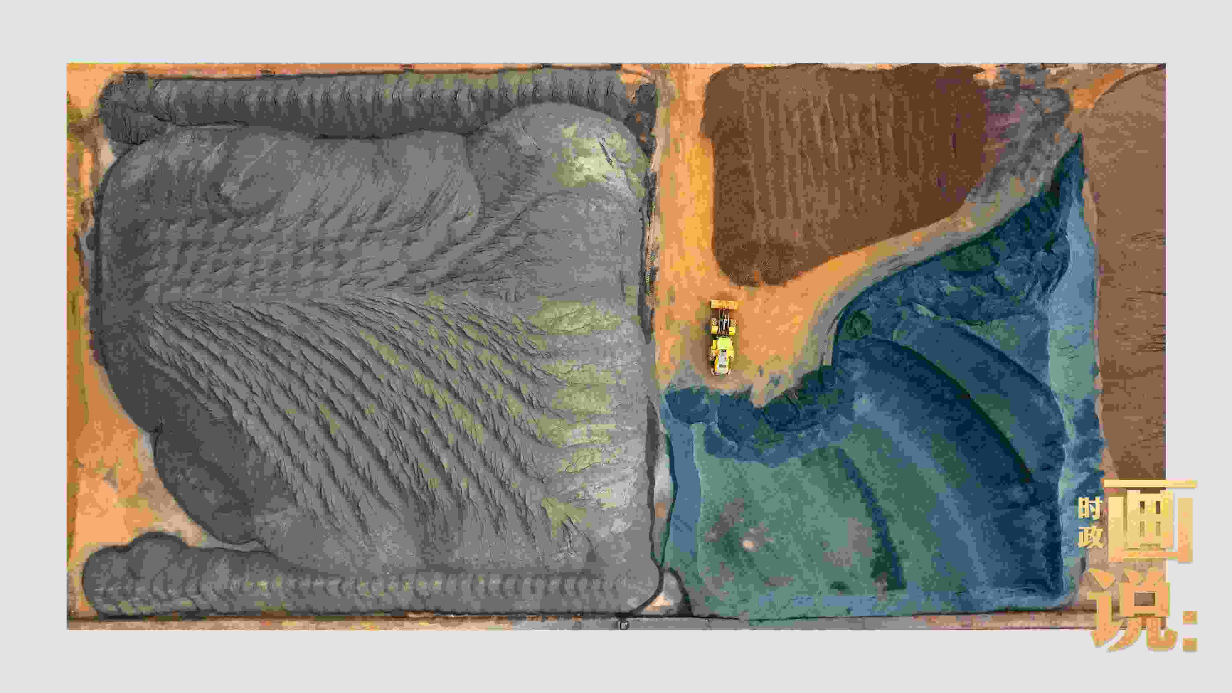 △港區(qū)內(nèi)的礦石堆場整理堆放著五顏六色的各類礦石、礦砂,宛如油畫。