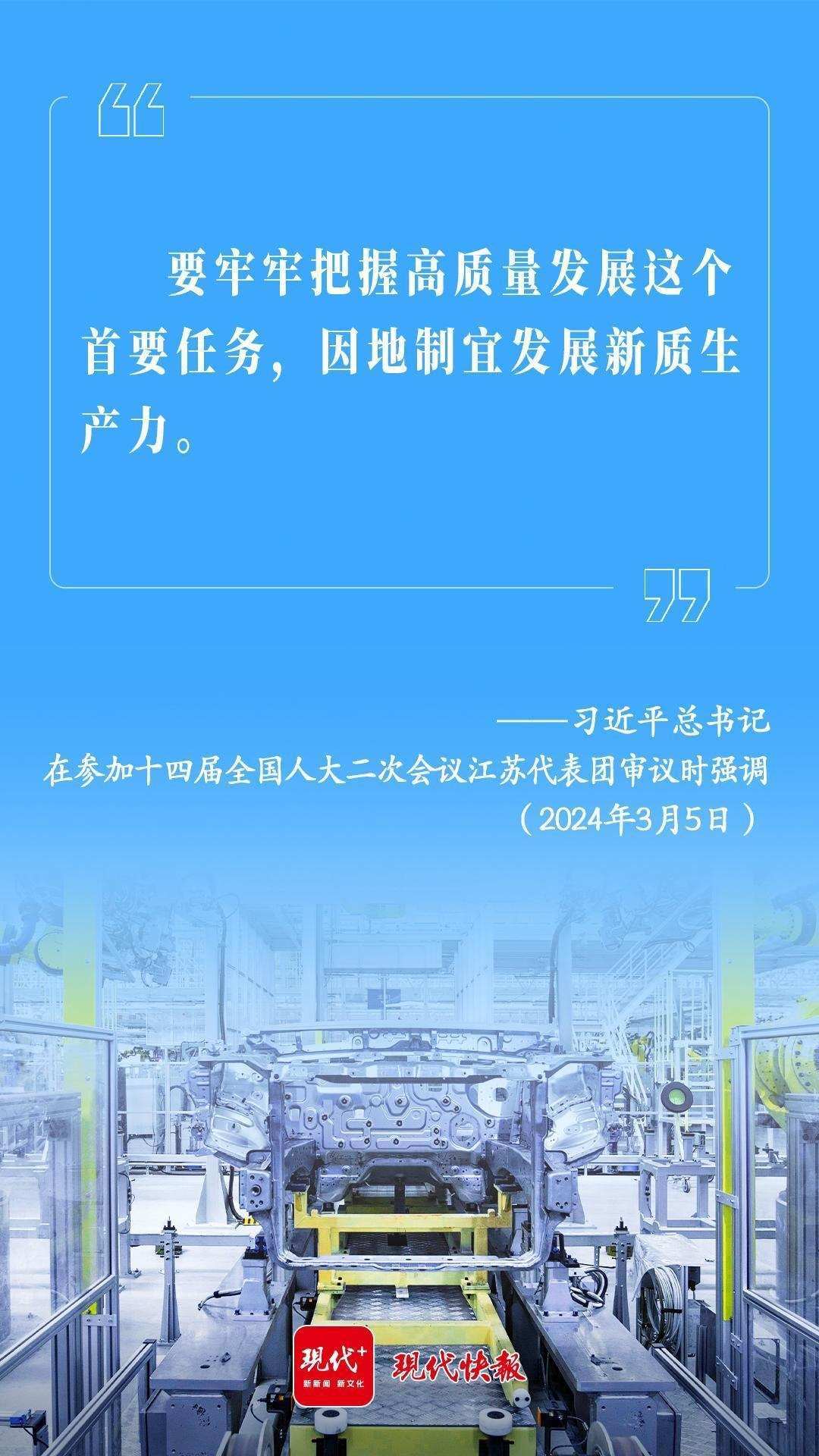 2024年3月5日,習(xí)近平總書記在參加十四屆全國(guó)人大二次會(huì)議江蘇代表團(tuán)審議時(shí)強(qiáng)調(diào):“要牢牢把握高質(zhì)量發(fā)展這個(gè)首要任務(wù),因地制宜發(fā)展新質(zhì)生產(chǎn)力。”