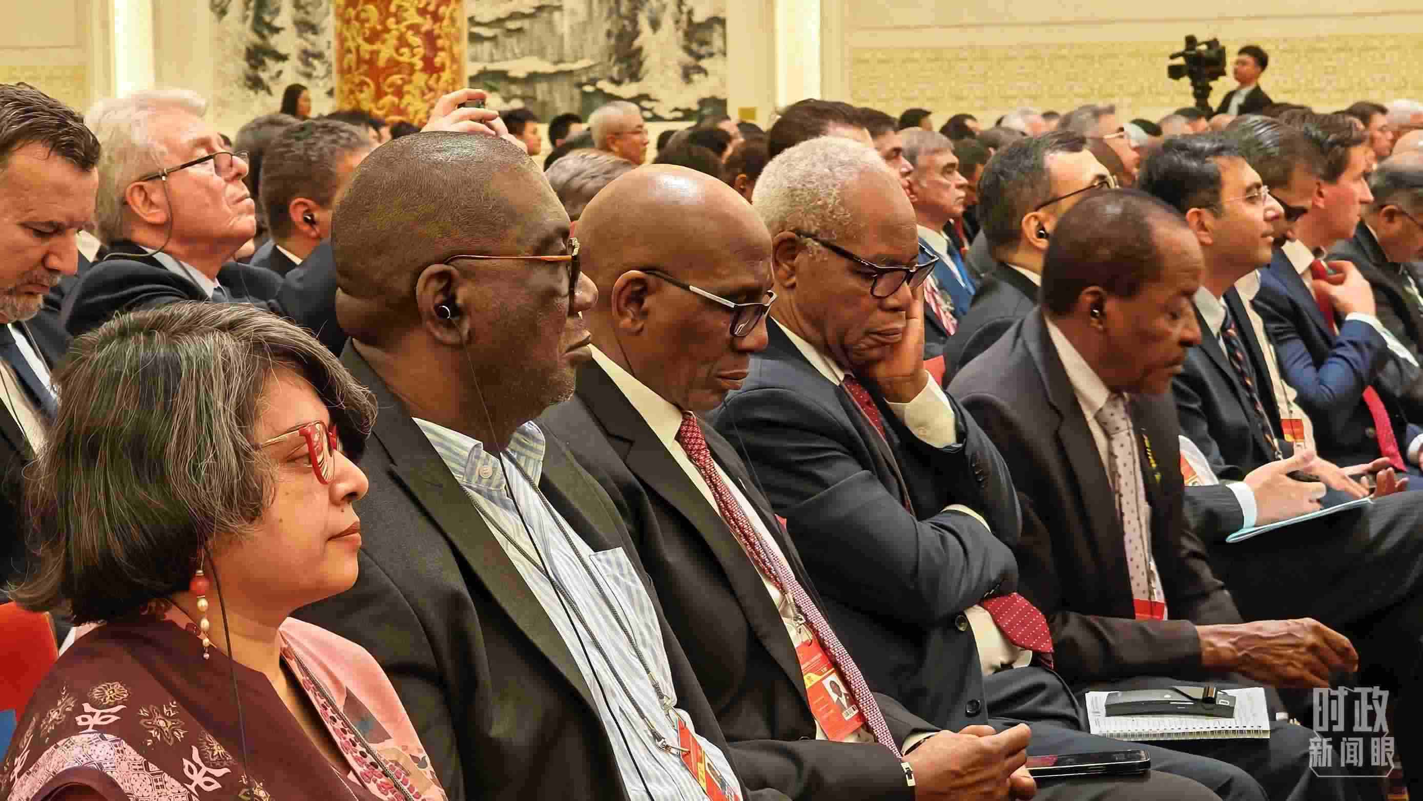 當(dāng)天,600余人共聚人民大會堂金色大廳,其中包括來自越南、緬甸、南非、埃塞俄比亞、巴西、法國等國的政要,同時還有國際和地區(qū)組織代表、來自100多個國家的駐華使節(jié)、中外專家學(xué)者、友好人士、媒體和工商界代表等。