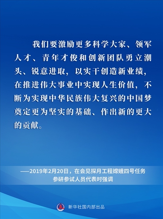 黨的十八大以來,在以習(xí)近平同志為核心的黨中央關(guān)心引領(lǐng)下,中國(guó)探月工程取得舉世矚目的重大成就,為探索宇宙奧秘、增進(jìn)人類福祉屢立新功,為以中國(guó)式現(xiàn)代化全面推進(jìn)強(qiáng)國(guó)建設(shè)、民族復(fù)興偉業(yè)作出卓越貢獻(xiàn)。