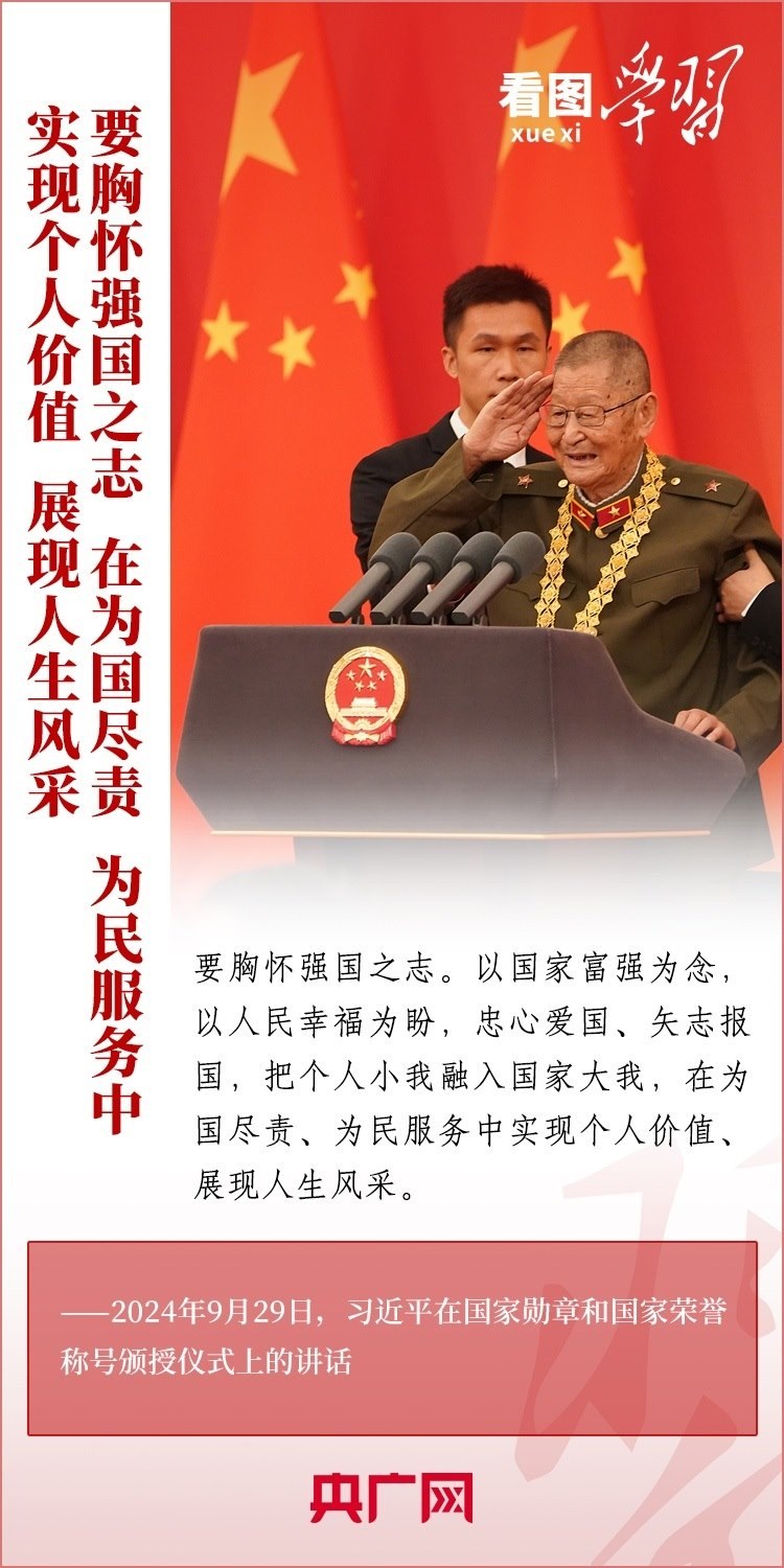 9月29日,中華人民共和國國家勛章和國家榮譽稱號頒授儀式在北京舉行,習(xí)近平總書記向國家勛章和國家榮譽稱號獲得者頒授勛章獎?wù)虏l(fā)表重要講話。總書記強(qiáng)調(diào),全黨全國各族人民要以英雄模范為榜樣,團(tuán)結(jié)奮進(jìn)、砥礪前行,匯聚起共襄強(qiáng)國盛舉的磅礴力量。一起來學(xué)習(xí)!