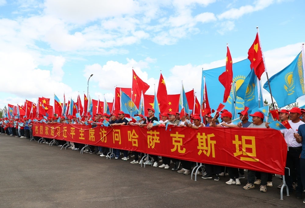 哈方在機(jī)場(chǎng)舉行隆重歡迎儀式,哈薩克斯坦少年兒童用中文演唱《歌唱祖國(guó)》。習(xí)近平乘車從機(jī)場(chǎng)赴下榻飯店途中,當(dāng)?shù)刂匈Y企業(yè)代表等候在道路兩旁,揮舞中哈兩國(guó)國(guó)旗,高舉“熱烈歡迎習(xí)近平主席訪問哈薩克斯坦”等紅色橫幅,熱烈歡迎習(xí)近平主席到訪。