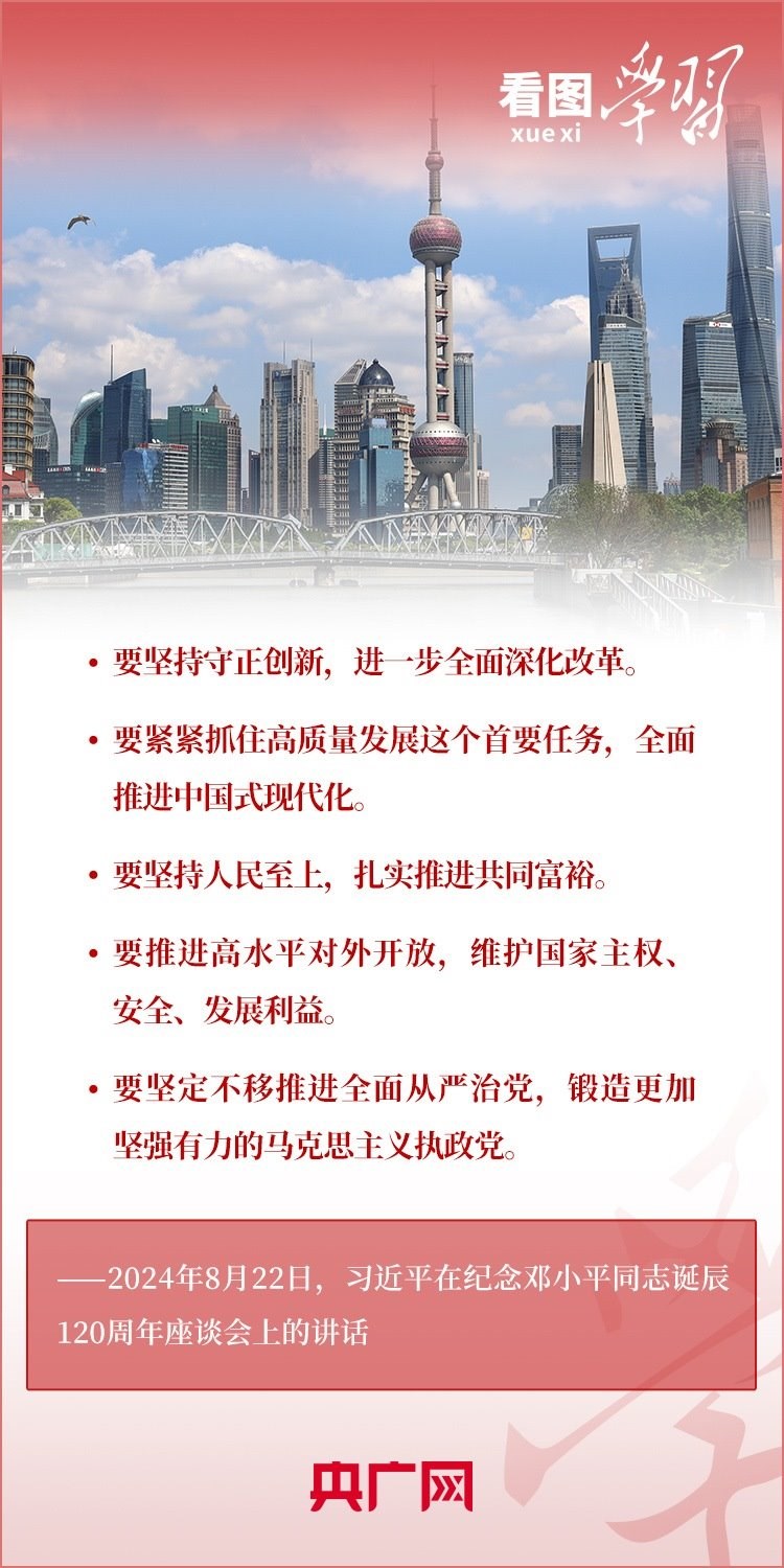 8月22日,習近平總書記在紀念鄧小平同志誕辰120周年座談會上發(fā)表重要講話指出,鄧小平同志的歷史功勛是全方位的、開創(chuàng)性的,對中國和世界的影響是深刻的、長遠的??倳洀娬{,對鄧小平同志最好的紀念,就是把他開創(chuàng)的中國特色社會主義事業(yè)繼續(xù)推向前進。我們要緊緊圍繞以中國式現(xiàn)代化全面推進強國建設、民族復興偉業(yè)這個中心任務,繼往開來,奮發(fā)進取。一起來學習!