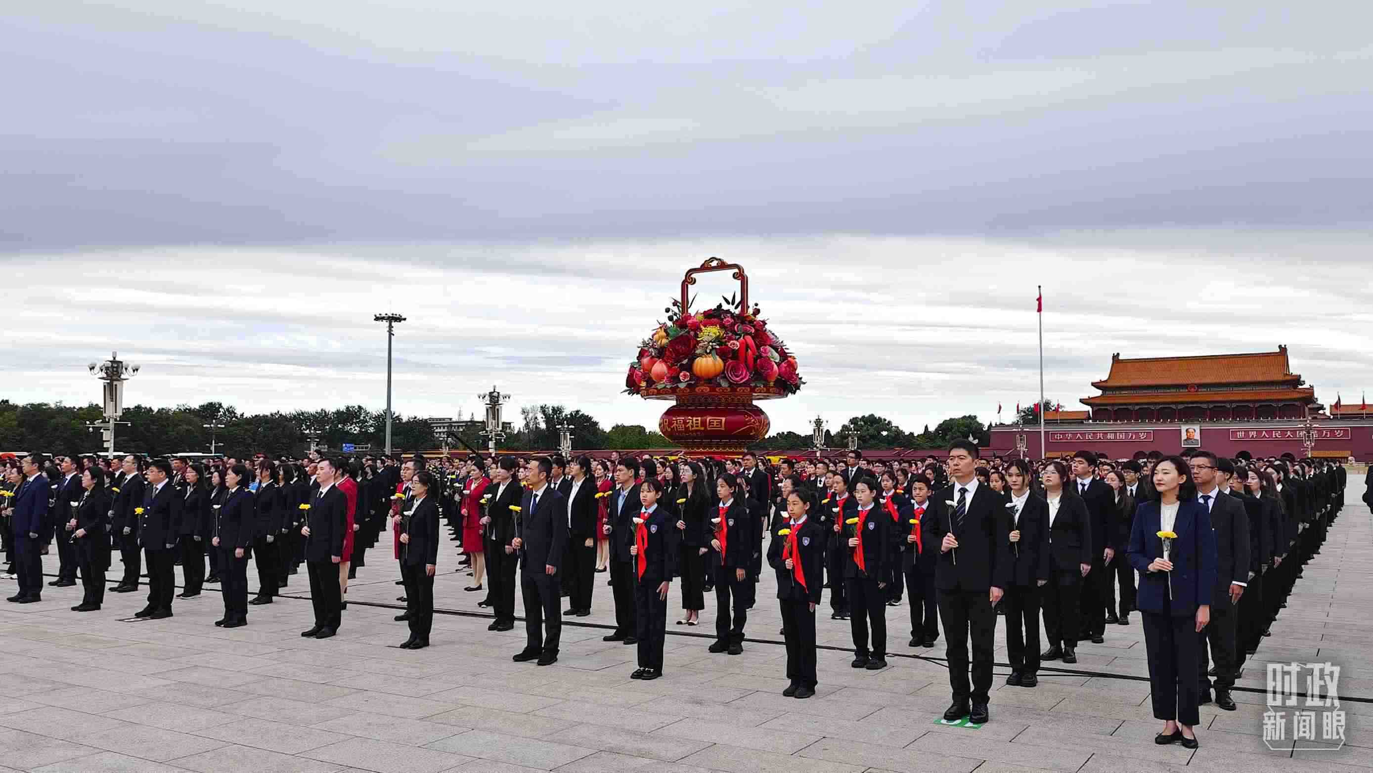 正逢新中國成立75周年,今年參加儀式的人數(shù)規(guī)模有所增加?!稌r(shí)政新聞眼》現(xiàn)場(chǎng)了解到,相較去年,人民英雄紀(jì)念碑基座上增加了4名禮兵。今年參加儀式的各界代表增至2400多名。
