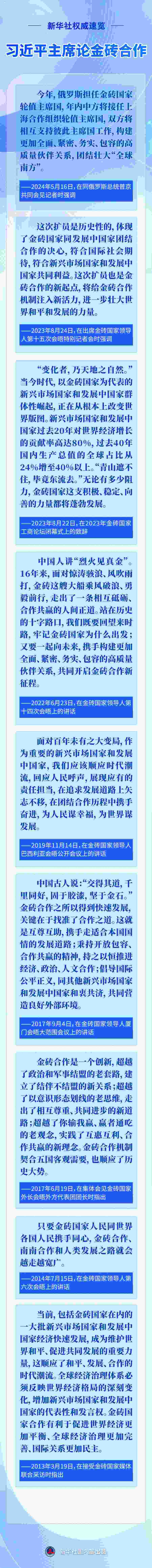 應俄羅斯聯邦總統(tǒng)普京邀請,國家主席習近平將于10月22日至24日赴俄羅斯喀山出席金磚國家領導人第十六次會晤。今年是“大金磚合作”開局之年,此次會晤是金磚擴員后首次舉行,國際社會廣泛關注。近年來,習近平主席圍繞金磚合作作出一系列重要論述,一起重溫——