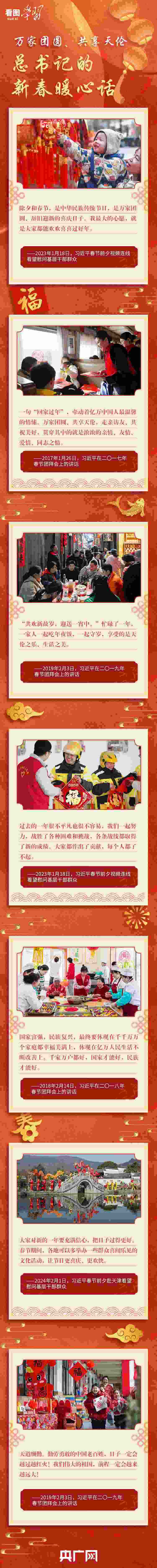 “共歡新故歲,迎送一宵中?!弊鳛橹腥A民族的傳統(tǒng)節(jié)日,除夕和春節(jié)是萬(wàn)家團(tuán)圓、辭舊迎新最重要的日子。每年春節(jié)前夕,習(xí)近平總書(shū)記都要看望慰問(wèn)各地基層干部群眾,向全國(guó)各族人民送上新春祝福。