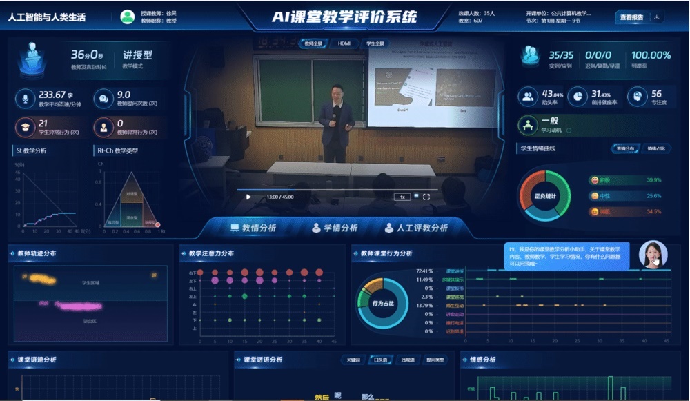 “您講授的‘人工智能與人類生活’課程質(zhì)量很高,但您的口頭語比較頻繁……”報告共有教學(xué)內(nèi)容、教學(xué)方法、師生行為等28項指標(biāo),還會針對提升教學(xué)質(zhì)量給出合理建議。