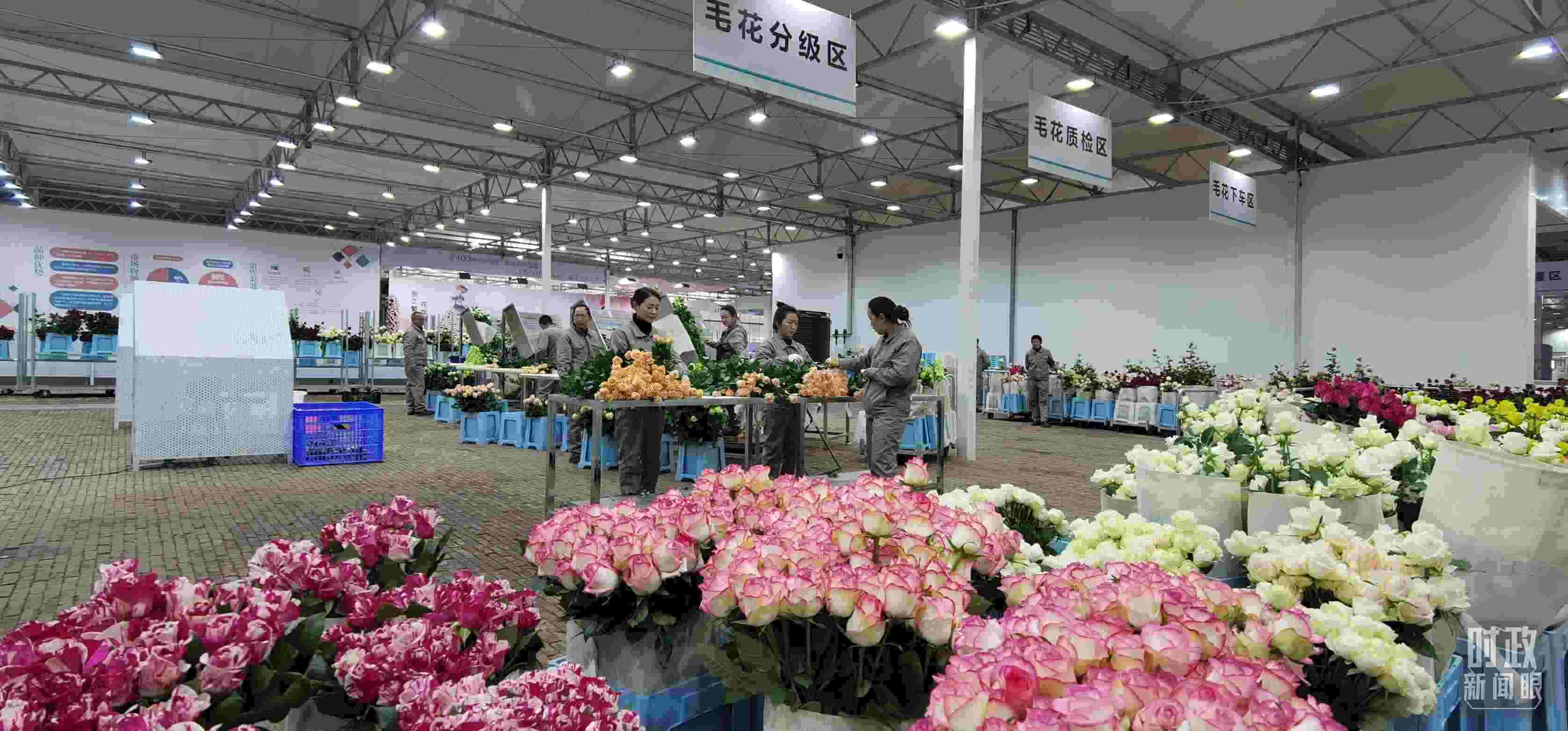 △麗江現(xiàn)代花卉產(chǎn)業(yè)園內(nèi),工人正在分類整理鮮花。(總臺央視記者郭鴻拍攝)