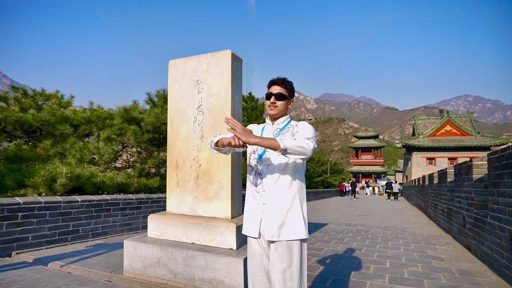 又是一年春好時。4月6日,站在長城上,愛好中國功夫的阿聯(lián)酋學(xué)生哈姆丹·艾哈邁德特意穿上嶄新的中式服裝,表演了一套中國功夫,一招一式頗有氣勢?!拔蚁朐谥袊鴮W(xué)習(xí)中文和更多功夫!”哈姆丹還是乒乓球愛好者,整天球不離手。他期待這次有機會和中國朋友一起切磋球技。
