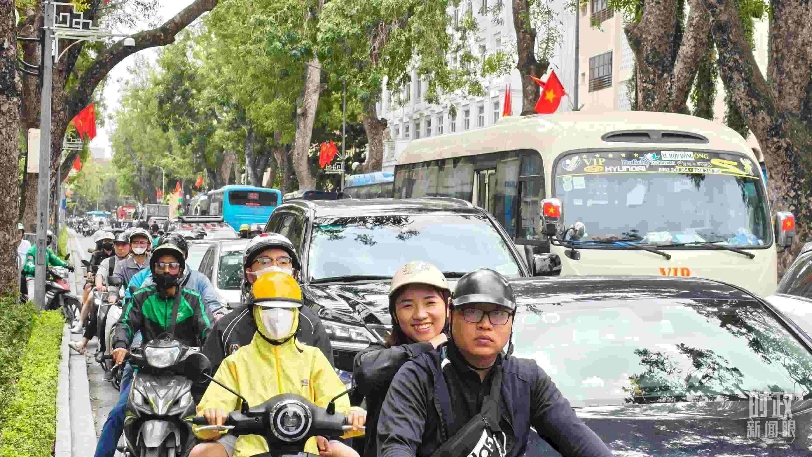 △ 河內(nèi)街道上民眾們手執(zhí)兩國(guó)國(guó)旗。(總臺(tái)國(guó)廣記者吳倩拍攝)
