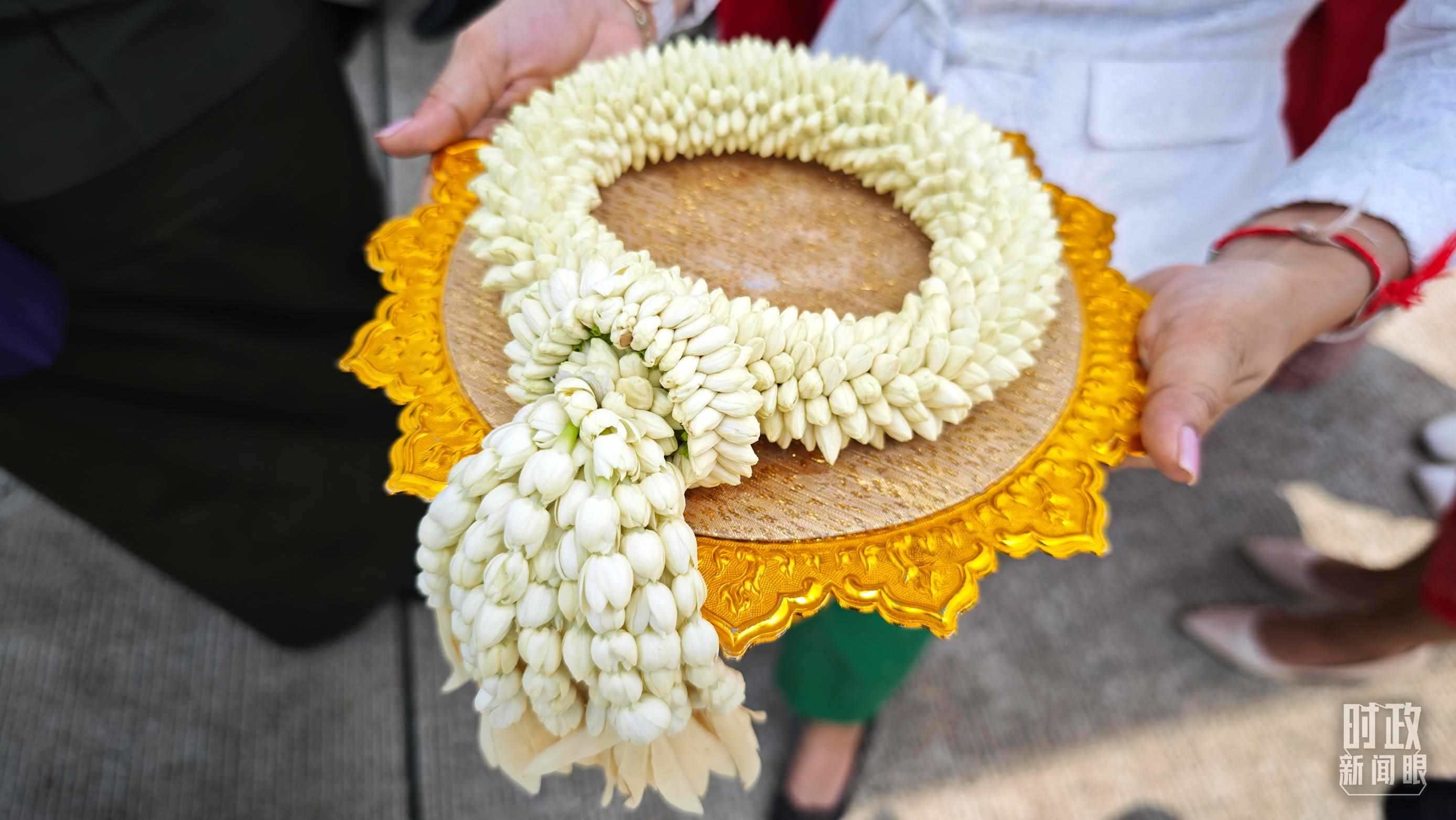 △柬埔寨王室珍娜公主向習主席獻上的茉莉花手環(huán)。(總臺央廣記者潘毅拍攝)