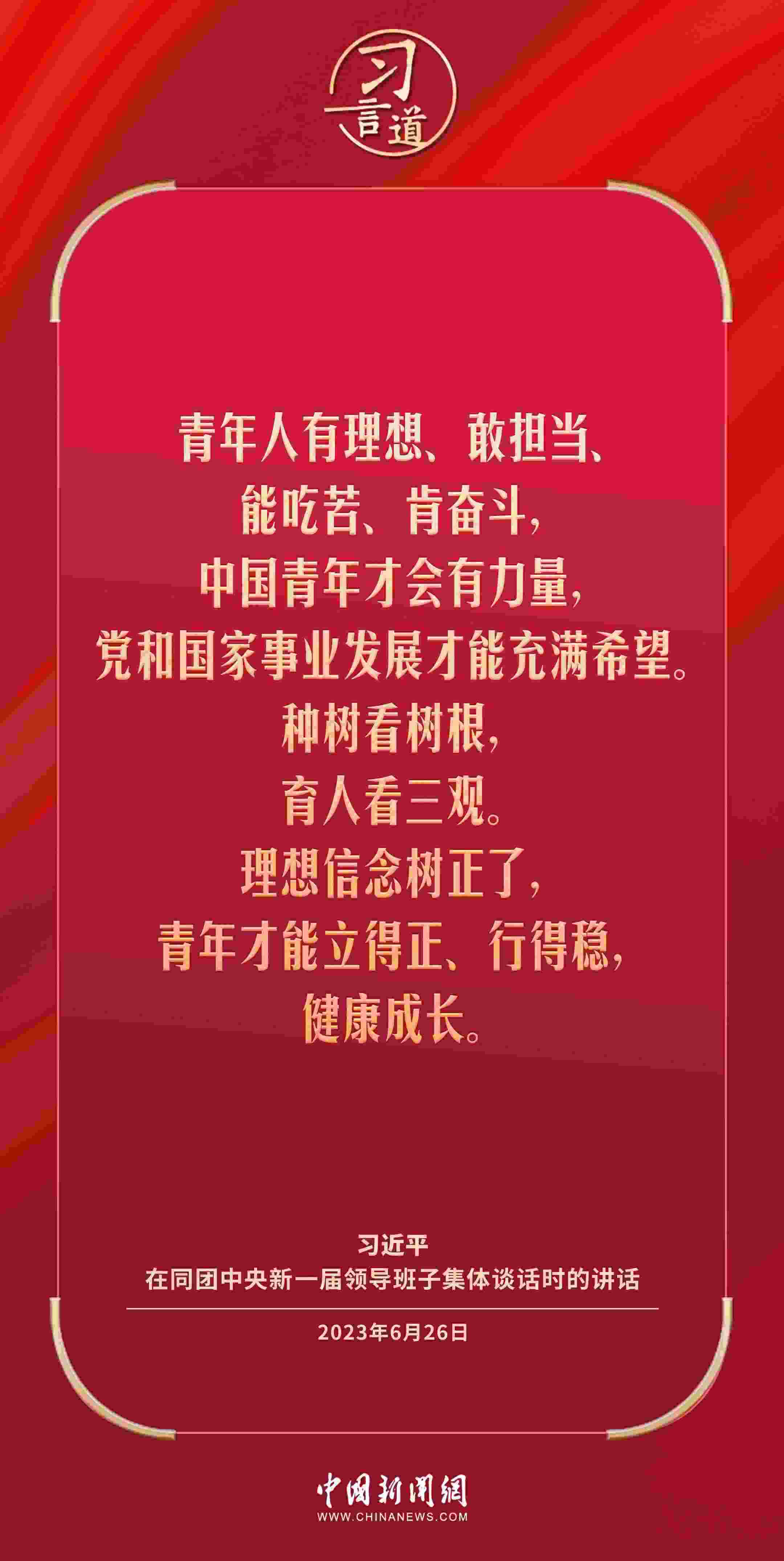 5月1日出版的《求是》雜志發(fā)表中共中央總書記、國家主席、中央軍委主席習(xí)近平的重要文章《激勵新時(shí)代青年在中國式現(xiàn)代化建設(shè)中挺膺擔(dān)當(dāng)》。這是習(xí)近平總書記2023年6月26日在同團(tuán)中央新一屆領(lǐng)導(dǎo)班子集體談話時(shí)講話的主要部分。
