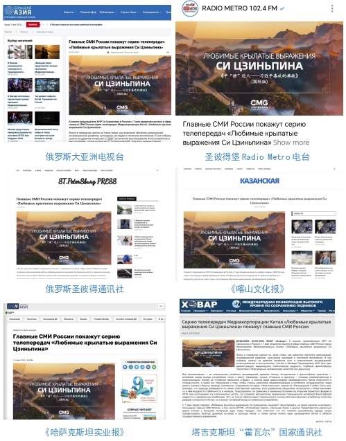 俄羅斯大亞洲電視臺(tái)、圣彼得堡Radio Metro電臺(tái)、俄羅斯圣彼得通訊社、《喀山文化報(bào)》《哈薩克斯坦實(shí)業(yè)報(bào)》、塔吉克斯坦“霍瓦爾”國(guó)家通訊社等亞歐地區(qū)多家主流媒體播發(fā)相關(guān)報(bào)道。