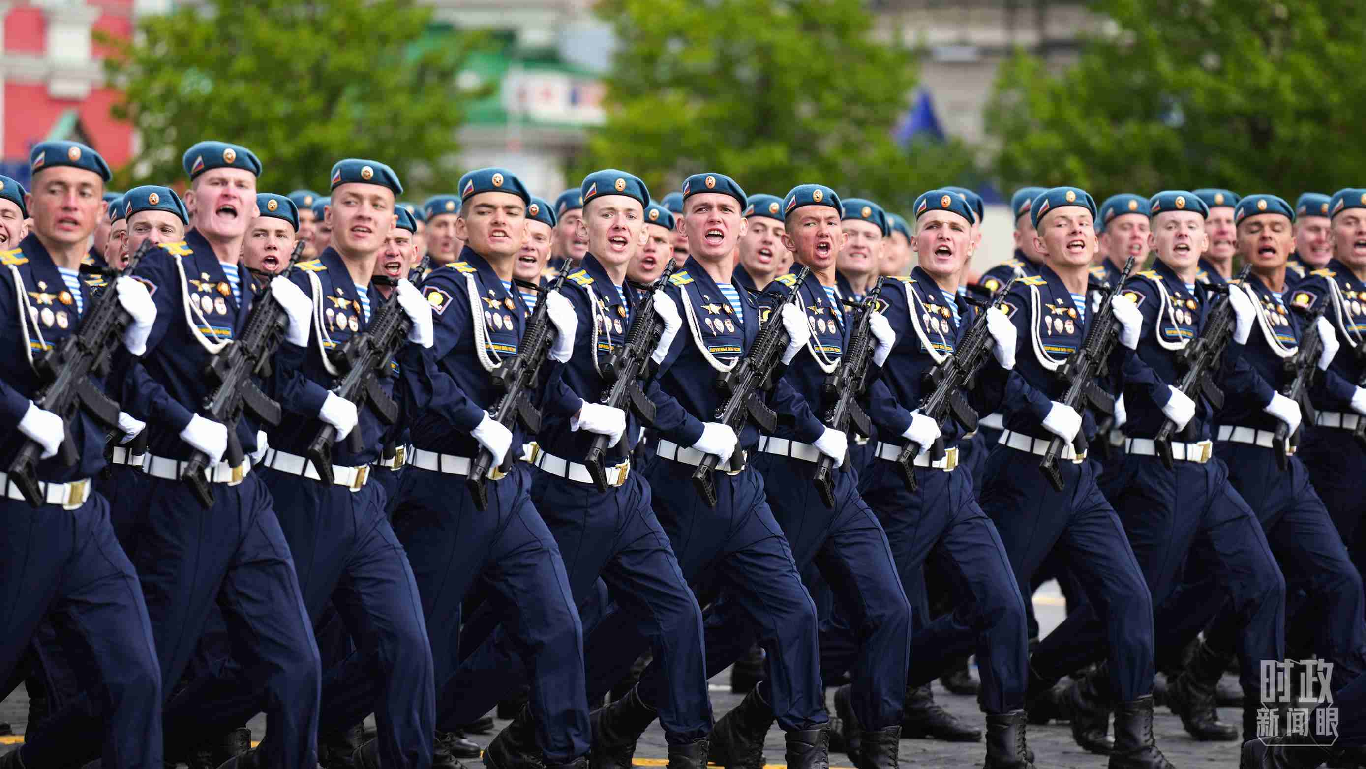 在儀仗隊(duì)入場(chǎng)后,普京總統(tǒng)發(fā)表致辭。隨后,軍樂(lè)隊(duì)奏俄羅斯國(guó)歌,紅場(chǎng)上鳴響禮炮,閱兵式開(kāi)始。閱兵式分為“歷史”和“現(xiàn)代”部分,受閱方隊(duì)依次從紅場(chǎng)走過(guò)。空天軍飛行編隊(duì)飛越紅場(chǎng)上空。中國(guó)等10多個(gè)國(guó)家的武裝力量方隊(duì)也受邀參加了閱兵式。