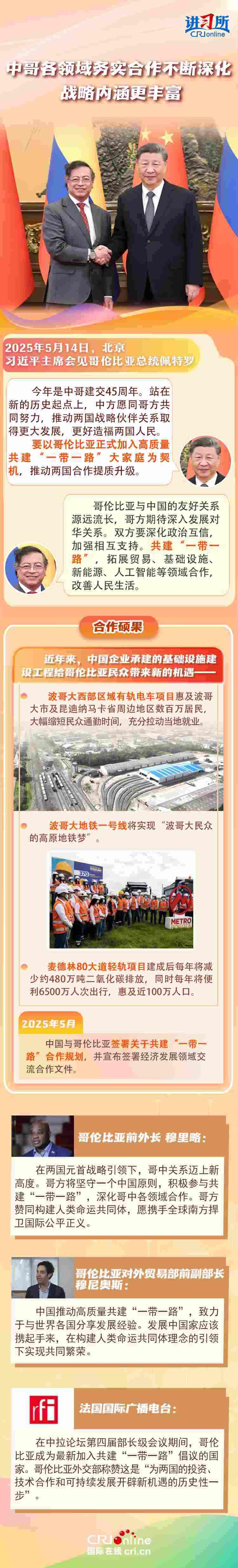 習(xí)近平主席在這三場雙邊外事活動(dòng)中,均提到了共建“一帶一路”倡議:“深化‘一帶一路’倡議同巴西發(fā)展戰(zhàn)略有效對接”“要以哥倫比亞正式加入高質(zhì)量共建‘一帶一路’大家庭為契機(jī),推動(dòng)兩國合作提質(zhì)升級”“雙方要落實(shí)好共建‘一帶一路’合作規(guī)劃”……10多年來,在習(xí)近平主席親自擘畫和推動(dòng)下,共建“一帶一路”從中國倡議走向國際實(shí)踐,取得了實(shí)打?qū)?、沉甸甸的成就?/p>