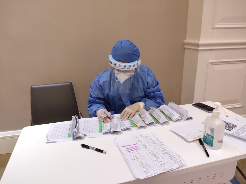 劉暢在隔離酒店統(tǒng)計人員防疫情況(圖片由受訪者提供)