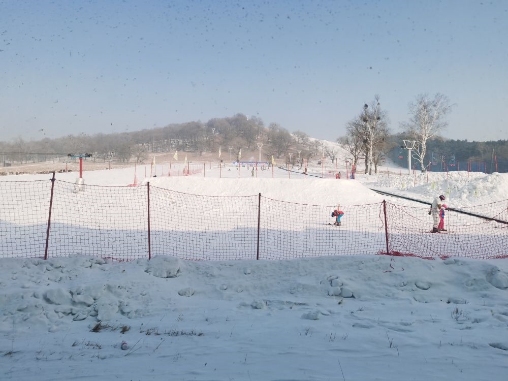 鹿群不遠(yuǎn)處,便是平山神鹿滑雪場,雪道上不少兒童正在這里進行研學(xué)活動。