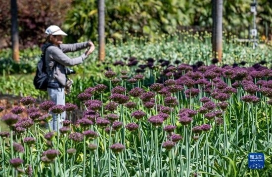 近日,昆明植物園中烏全球蔥園(昆明中心)內(nèi)的近十個(gè)品種、6000余株觀賞蔥屬植物逐漸迎來(lái)盛花期,吸引游客前來(lái)觀光。據(jù)了解,蔥屬植物具有重要的經(jīng)濟(jì)利用價(jià)值,許多種類(lèi)被人類(lèi)作為食用、藥用和觀賞植物進(jìn)行了長(zhǎng)期的栽培利用。