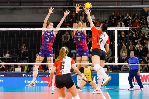 朱婷(4號(hào))與貝麗恩攔網(wǎng)。圖片來源:歐聯(lián)杯官網(wǎng)