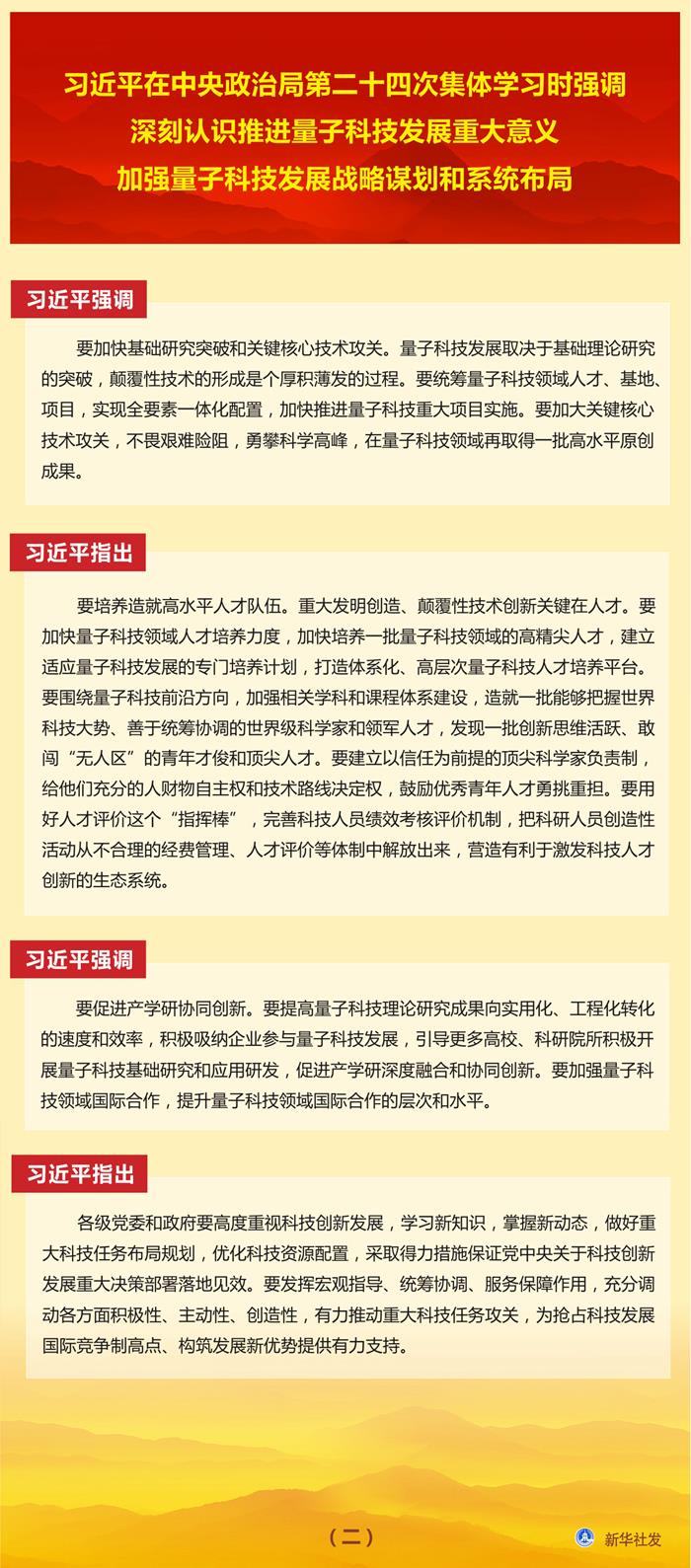 習(xí)近平在中央政治局第二十四次集體學(xué)習(xí)時(shí)強(qiáng)調(diào) 深刻認(rèn)識推進(jìn)量子科技發(fā)展重大意義 加強(qiáng)量子科技發(fā)展戰(zhàn)略謀劃和系統(tǒng)布局