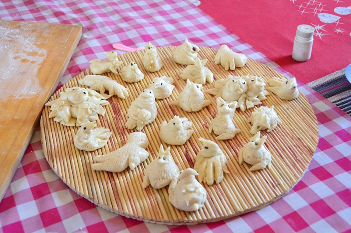 俗稱面花、禮饃、花糕、捏面人,是民間美術(shù)與傳統(tǒng)手工技藝有機(jī)結(jié)合的藝術(shù)形式。2008年,入選第二批國家級(jí)非物質(zhì)文化遺產(chǎn)名錄。
