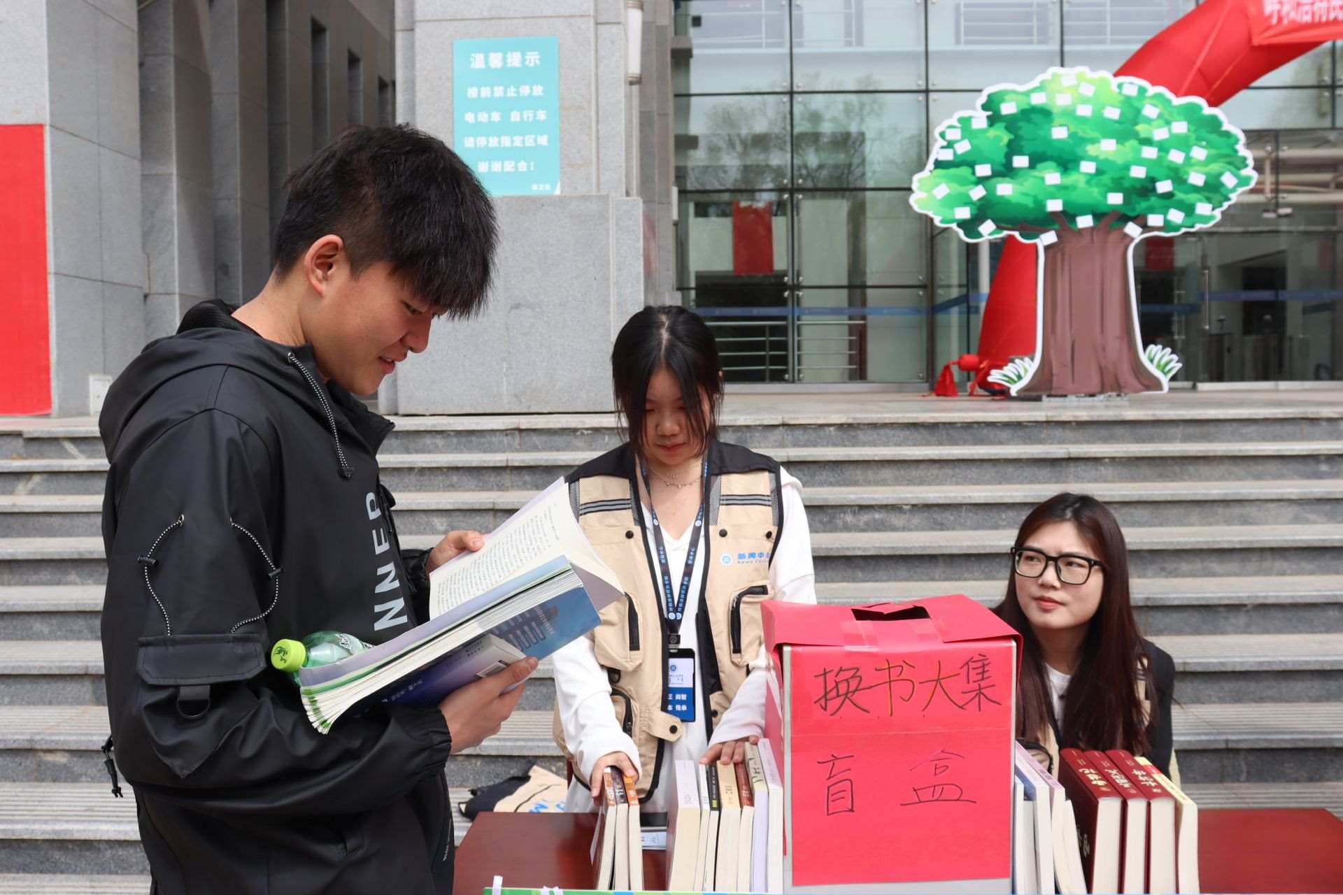 風(fēng)和日麗,春暖花開(kāi)。4月23日,第28個(gè)世界讀書(shū)日,呼和浩特民族學(xué)院在南區(qū)圖書(shū)館前開(kāi)展“換書(shū)大集”活動(dòng),現(xiàn)場(chǎng)共設(shè)置18個(gè)換書(shū)展位,特別設(shè)立換書(shū)“盲盒區(qū)”,現(xiàn)場(chǎng)換書(shū)300余本,同學(xué)們廣泛參與,場(chǎng)面火熱。