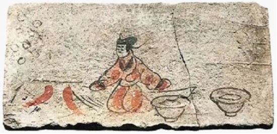 在甘肅省河西地區(qū),發(fā)掘出大批魏晉時代的壁畫磚墓,其中多幅“烙餅圖”引人注目。1972年,甘肅省嘉峪關(guān)市魏晉壁畫墓發(fā)掘的一幅烙餅圖中,一名女子正手持面皮往鏊子上放。1993年,甘肅省酒泉市果園鄉(xiāng)西溝村魏晉墓也發(fā)現(xiàn)了“烙餅圖”,一女子頭梳發(fā)髻,跪坐在三足平底鏊子前烙餅,身后放有兩個大盆。
