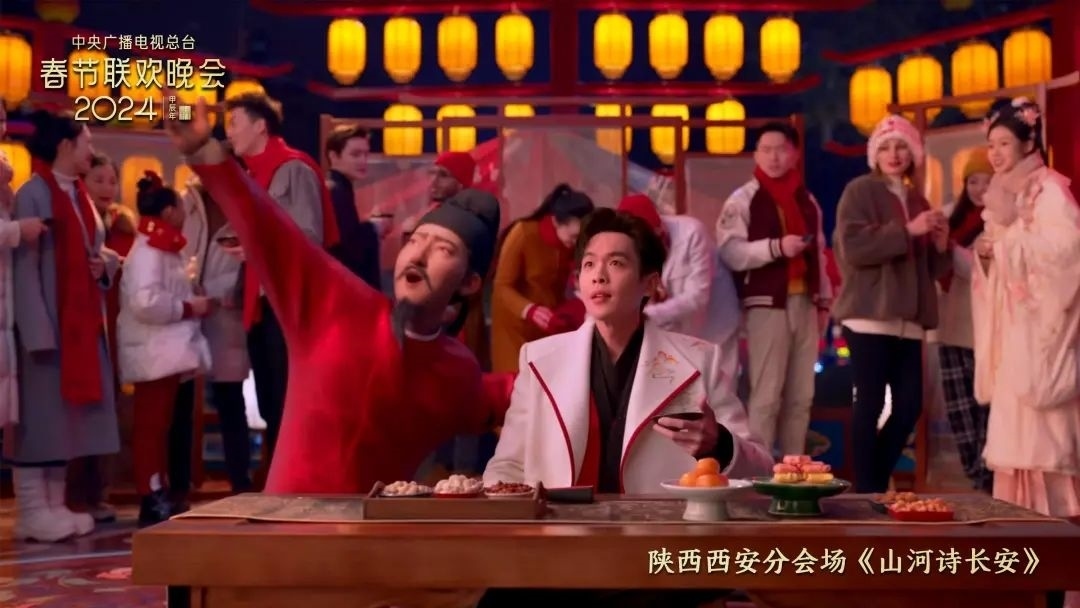 龍年春晚,西安分會(huì)場(chǎng)拿出年度熱門電影《長(zhǎng)安三萬里》,將詩意浪漫與熱血沸騰有機(jī)結(jié)合。一大批既具有中國(guó)傳統(tǒng)審美意蘊(yùn)又盡顯時(shí)代風(fēng)采的優(yōu)質(zhì)原創(chuàng)節(jié)目在傳統(tǒng)服飾、健康養(yǎng)生等新的文化賽道引領(lǐng)風(fēng)潮。而三大英雄史詩、民歌串燒等節(jié)目則以熱烈質(zhì)樸的表演形式,展現(xiàn)中華民族各民族文化融為一體、盡情歡歌,盡顯中華優(yōu)秀傳統(tǒng)文化在新時(shí)代煥發(fā)出蓬勃的生命力。