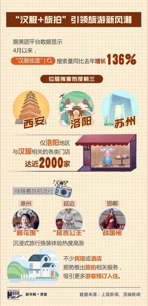 美團(tuán)平臺(tái)數(shù)據(jù)顯示,4月以來(lái),“漢服妝造”搜索量同比增長(zhǎng)136%。西安、洛陽(yáng)等街頭,隨處可見身著漢服的年輕人在博物館、遺址公園等景區(qū)打卡拍照,摩肩接踵間皆是“貴妃”,文博景區(qū)附近不少商鋪以漢服妝造店為主。不少民宿或酒店,順勢(shì)推出旅拍服務(wù),吸引更多年輕人預(yù)定入住。