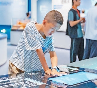 陜西歷史博物館秦漢館,游客在體驗互動裝置。施 覺攝