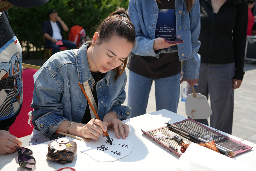 舞臺一側(cè),書畫家們揮毫潑墨,筆走龍蛇,引得圍觀觀眾連連稱贊。非物質(zhì)文化遺產(chǎn)展區(qū)更是熱鬧非凡,琳瑯滿目的非遺展品令人目不暇接,剪紙、漆扇等傳統(tǒng)技藝展示,讓大家近距離領(lǐng)略到非物質(zhì)文化遺產(chǎn)的獨(dú)特魅力。