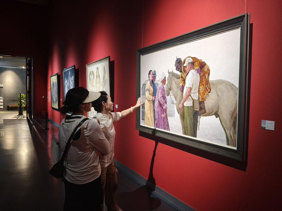“吾心歸 ——內蒙古美術館館藏妥木斯師生油畫作品展”(8.8-9.7,3/4號展廳):該展覽像一部立體的草原藝術編年史,妥木斯筆下的蒙古馬依然昂揚,而弟子們的作品早已玩出了新花樣:超現實手法讓羊群飄在星空下,極簡線條勾勒出蒙古包的幾何之美。在“當代回聲”篇章里,能清晰看見草原意象如何在畫布上完成從傳統(tǒng)到現代的蛻變,就像馬頭琴也能彈出電子旋律,根沒變,韻更活了。