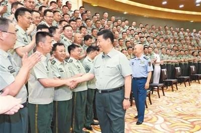 7月15日至16日,中共中央總書記、國家主席、中央軍委主席習近平在內蒙古考察并指導開展“不忘初心、牢記使命”主題教育。這是16日上午,習近平在呼和浩特親切接見駐內蒙古部隊副師職以上領導干部和團級單位主官,代表黨中央和中央軍委向駐內蒙古部隊全體官兵致以誠摯問候。 新華社記者 李 剛攝