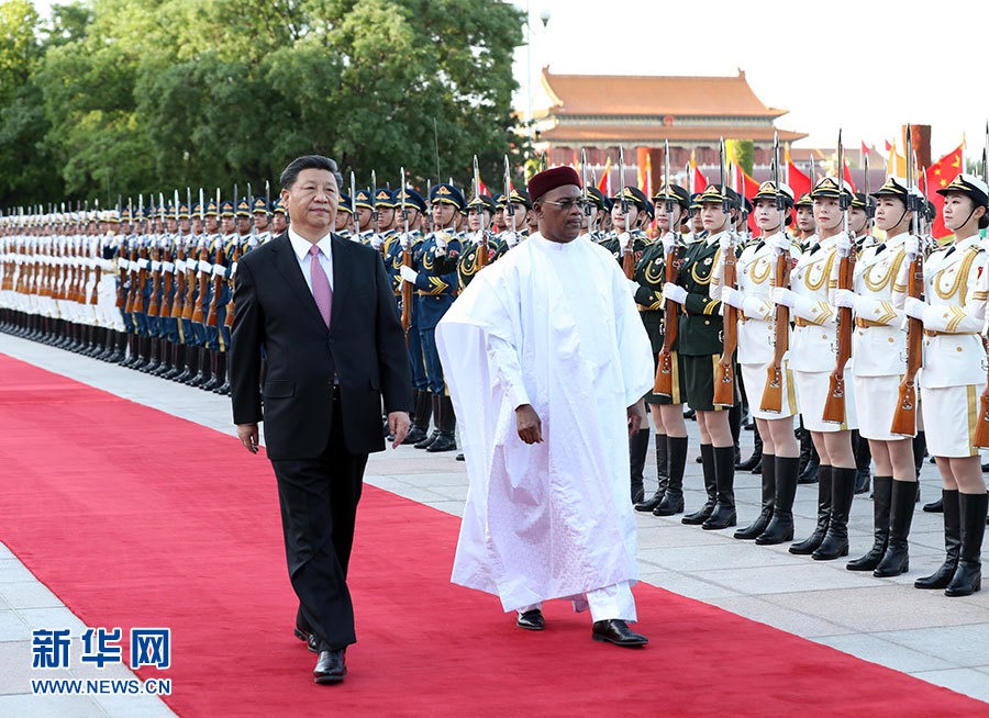 5月28日,國(guó)家主席習(xí)近平在北京人民大會(huì)堂同尼日爾總統(tǒng)伊素福舉行會(huì)談。這是會(huì)談前,習(xí)近平在人民大會(huì)堂東門外廣場(chǎng)為伊素福舉行歡迎儀式。