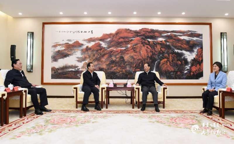 9月14日下午,自治區(qū)黨委書(shū)記、人大常委會(huì)主任石泰峰,自治區(qū)黨委副書(shū)記、自治區(qū)主席布小林在呼和浩特會(huì)見(jiàn)自然資源部黨組書(shū)記、部長(zhǎng)、自然資源總督察陸昊。內(nèi)蒙古日?qǐng)?bào)記者 袁永紅 攝