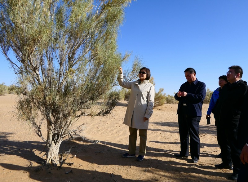 10月5日,自治區(qū)黨委副書記、自治區(qū)主席布小林到塔木素萬畝天然梭梭林基地調(diào)研。李和善 攝
