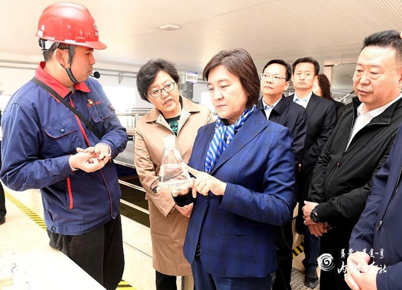 布小林十分關(guān)心沿黃地區(qū)的水資源節(jié)約集約高效利用和生態(tài)保護(hù)建設(shè)。她來(lái)到烏海市綠色生態(tài)農(nóng)業(yè)產(chǎn)業(yè)園,走進(jìn)綠農(nóng)永勝農(nóng)民專(zhuān)業(yè)合作社陽(yáng)光大棚葡萄基地,詳細(xì)了解葡萄種植需水和高效節(jié)水設(shè)施的使用情況;在烏海市啟源供水有限公司,實(shí)地查看凈水工藝流程及針對(duì)黃河水特點(diǎn)采取的處理措施。布小林指出,我區(qū)沿黃地區(qū)大多水資源匱乏,生態(tài)保護(hù)和經(jīng)濟(jì)社會(huì)發(fā)展面臨水資源短缺的剛性約束。抓好水資源節(jié)約集約高效利用,是推進(jìn)黃河流域生態(tài)保護(hù)和高質(zhì)量發(fā)展的重中之重。要牢固樹(shù)立節(jié)水意識(shí),堅(jiān)持以水定城、以水定地、以水定人、以水定產(chǎn),合理規(guī)劃人口、城市和產(chǎn)業(yè)發(fā)展,大力發(fā)展節(jié)水產(chǎn)業(yè)和技術(shù),實(shí)施全社會(huì)節(jié)水行動(dòng),推動(dòng)用水方式由粗放向節(jié)約集約轉(zhuǎn)變。要大力發(fā)展循環(huán)經(jīng)濟(jì),結(jié)合技術(shù)改造和產(chǎn)品更新?lián)Q代,組織實(shí)施重大節(jié)水和水循環(huán)利用示范工程,提高水資源重復(fù)利用率。