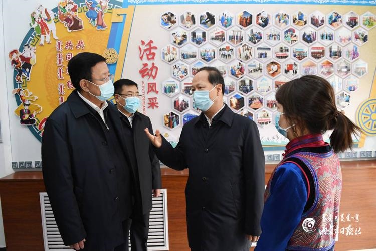 期間,石泰峰先后來到達布希勒特社區(qū)黨群服務(wù)中心和錫林浩特市民族小學(xué)考察調(diào)研,與社區(qū)干部和校長、教師深入交流,他強調(diào),要緊緊圍繞鑄牢中華民族共同體意識這條主線做好城市民族工作,創(chuàng)新載體、實化抓手,從視覺形象到文化符號都要充分體現(xiàn)共同性,切實營造各民族交往交流交融、其樂融融的濃厚氛圍。推廣普及國家通用語言文字是鑄牢中華民族共同體意識的重要途徑、是做好民族地區(qū)工作的長久之策和固本之舉,要從教育開始、從娃娃抓起,要真正搞清楚教育的目的是什么、要培養(yǎng)什么樣的人這個重大問題。