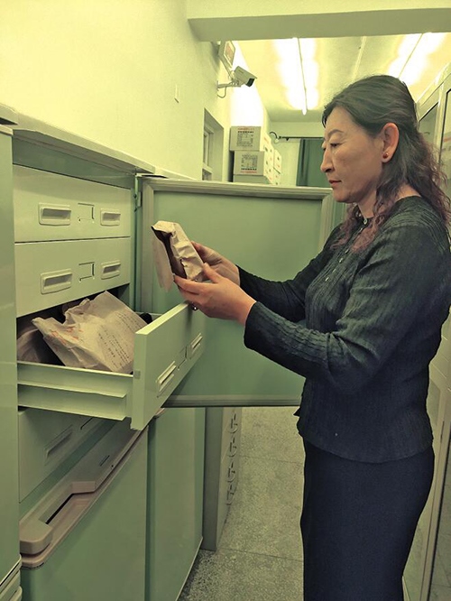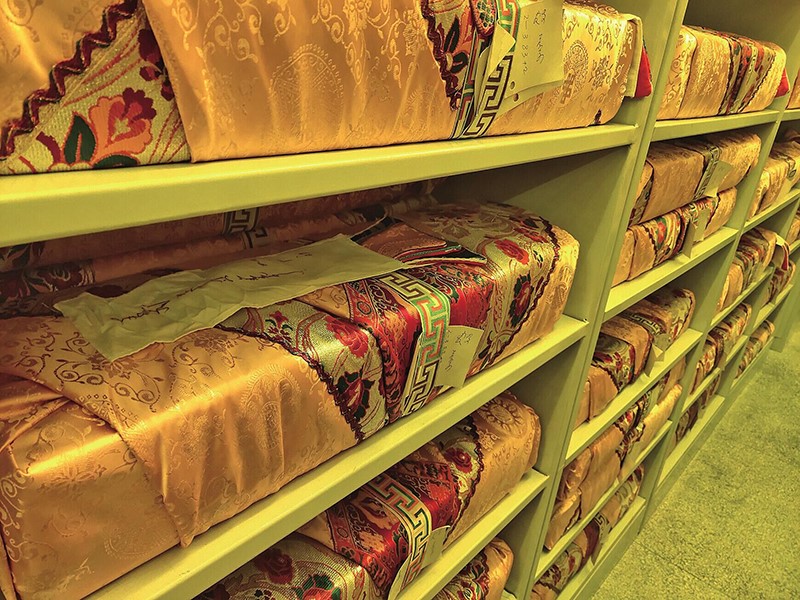 走入蒙古文古籍庫,上萬件古籍靜靜地?cái)[放著,在昏黃的特殊燈光照射下,一排排書架金光閃閃,一個(gè)個(gè)防磁柜就像知識(shí)的巨人并肩站立,歷史在這里塵封,也在這里開啟。