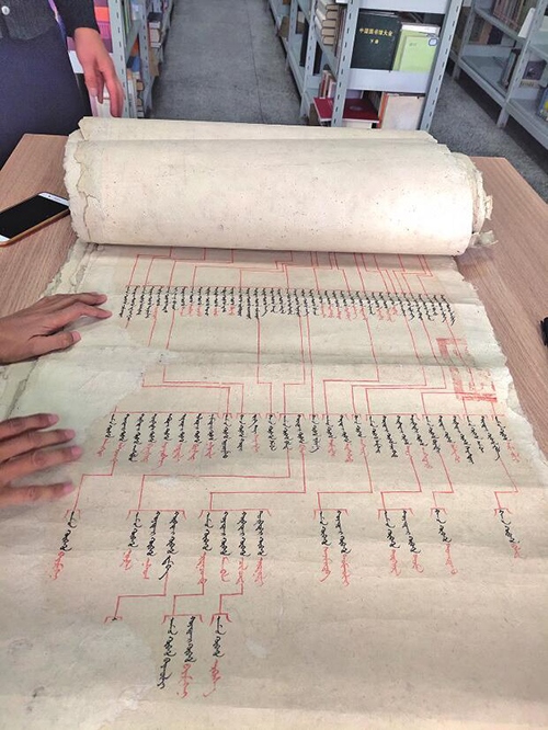 內(nèi)蒙古社會(huì)科學(xué)院圖書館館長王智說:“這里的寶貝有很多,經(jīng)書、圣旨、家譜,種類豐富且保存較為完整。館內(nèi)現(xiàn)有藏書26萬冊(cè),包括漢文、蒙古文、滿文、外文等各類圖書。其中,蒙古文古籍6280種3萬余冊(cè),約占全國各圖書館蒙古文古籍收藏種類的50%,且多為木刻原版或手抄本。單是這一個(gè)數(shù)字,就是其它圖書館無法匹及的?!?/p>